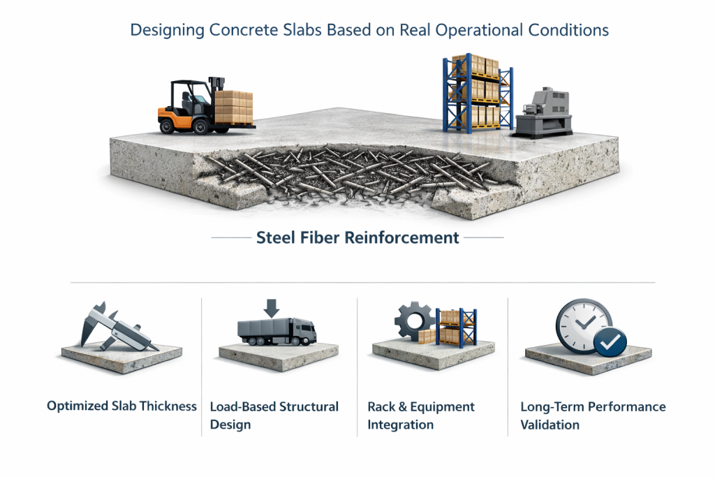 We design concrete slabs based on real operational conditions, not theoretical assumptions.