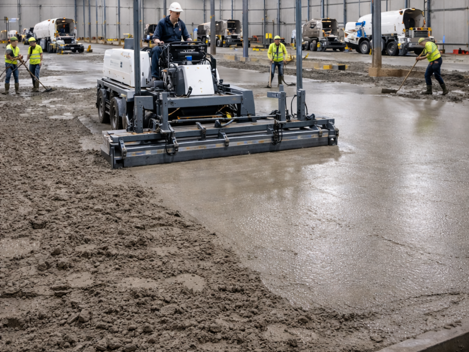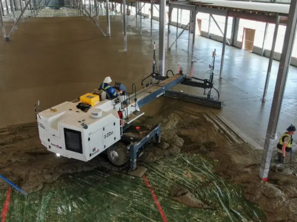 Large industrial floors require accurate concrete placement, consistent slab thickness, and high surface flatness. Achieving these requirements using traditional methods can be difficult, particularly in large warehouses and industrial facilities.